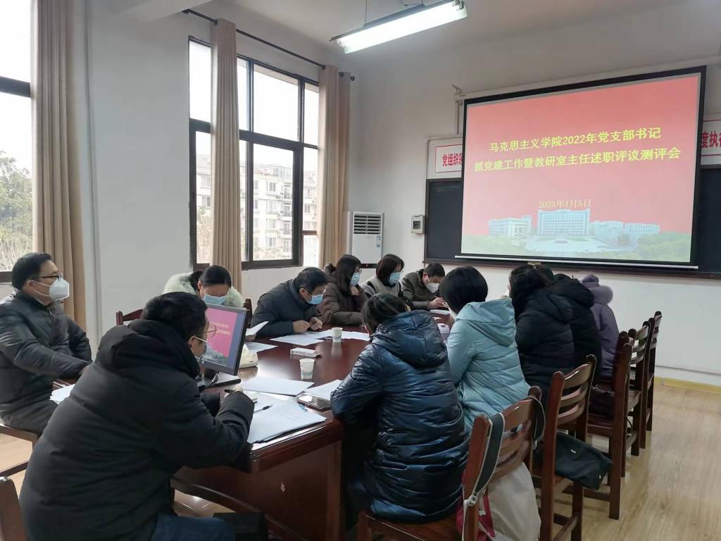 在综合楼312会议室召开2022年党支部书记抓党建述职评议会。学院党委委员、纪委委员、党支部书记、分工会主席、教研室负责人、科级干部、教师和学生代表等参加会议。会议由学院党委书记徐惠主持。