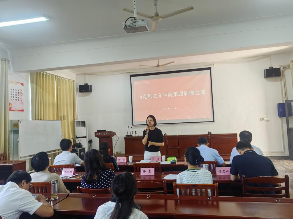 第四届微党课比赛在佳山校区综合楼325报告厅举行。担任本次大赛评委的有校党委常委、党委宣传(统战)部部长王菁,校党委巡察工作办公室主任洪芳、化学与化工学院党委书记黄宇弦、建筑工程学院党委书记张虎,以及校纪委正处级纪检监察员杨卫兵。学院班子成员、师生党员代表到场观摩学习。比赛由概论教研室党支部支委杨蓉负责主持。