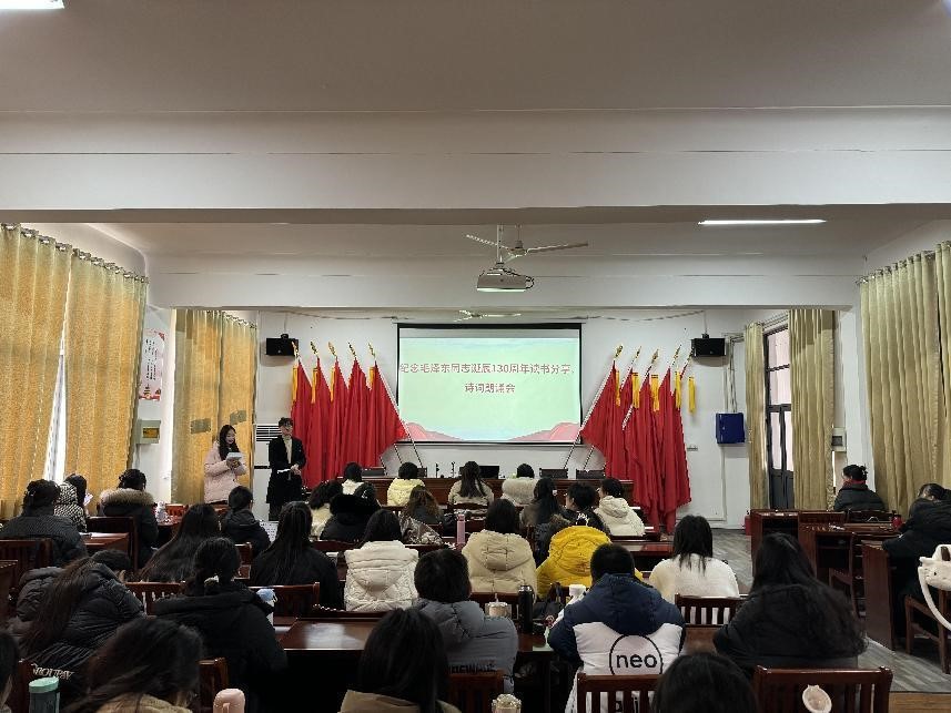 研究生党支部、研究生会联合举办了纪念毛泽东同志诞辰130周年读书分享和诗词朗诵活动。学院党委书记徐惠出席活动,学院负责党团学工作的老师和全体研究生参加了活动。