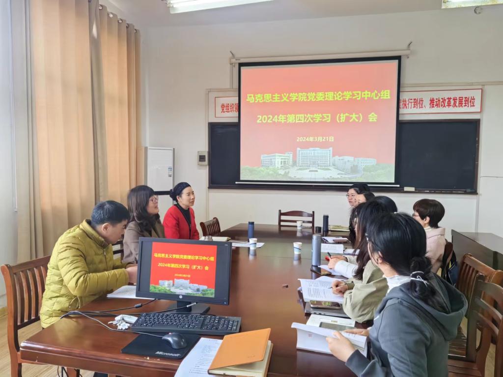 在学院312会议室召开传达学习全国两会精神会议暨院党委理论学习中心组2024年第四次学习会,学院党委委员、党支部书记参会,会议由学院党委书记徐惠主持。