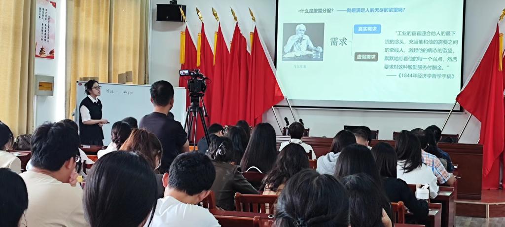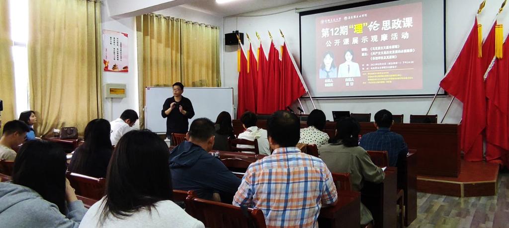 开展“‘理’论思政课” (第12期)公开课展示观摩活动。校教学督导组文科组长潘淑琴出席,学院党政领导、院教学督导组老师、相关教研室负责人、教师和学生代表等观摩了本次展示活动。本次活动由沈嘉仪和聂蕾两位老师主讲展示,《马克思主义基本原理》教研室承办,由《马克思主义基本原理》教研室主任许屹山主持。