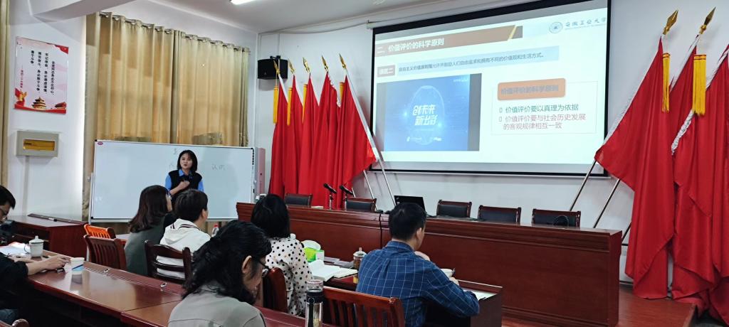 聂蕾以《价值评价及其原则》为题进行展示,她紧密联系热点案例,设置学生互动环节,引导学生在轻松愉快的学习氛围中充分地理解价值评价的内涵及其特点,提升学生的理论素养和对社会现实问题的分析能力、辨别能力。