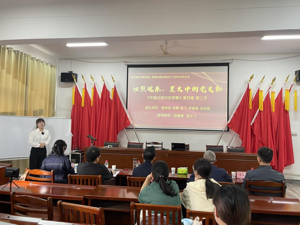 比赛按课程分两组进行。以《习近平新时代中国特色社会主义思想概论》《中国近现代史纲要》《思想道德与法治》等课程为一组的团队选手和以《毛泽东思想和中国特色社会主义理论体系概论》《马克思主义基本原理》《形势与政策》等课程组成的团队,围绕“新思想引领新征程 新青年建功新时代”主题,从教学内容、教学设计、教学风格、教学课件等方面进行了精彩展示。比赛现场气氛热烈,选手们认真准备,既有现场的理论阐释,又有行走的思政课的深入调研和精彩解说;既有团队某一位成员激情阐释,又有团队成员轮流上场的慷慨陈词。各团队紧扣课程特点与目标,充分挖掘育人元素,根据指导老师的悉心指导,大胆创新,精心设计,以饱满的热情,自信的表达,生动展现了我校大学生对思政课的理解和热爱。经过现场决赛结果,评选出一等奖6名、二等奖13名、三等奖19名,优秀奖若干,管理科学与工程学院、公共管理与法学院、商学院、建筑工程学院、计算机科学与技术学院、化学与化工学院、能源与环境学院获优秀组织奖,陆春晖、苗云飞、聂蕾、吴坤、胡蓉、牛云芳、黄雨晴、刘丹丹获优秀指导老师。