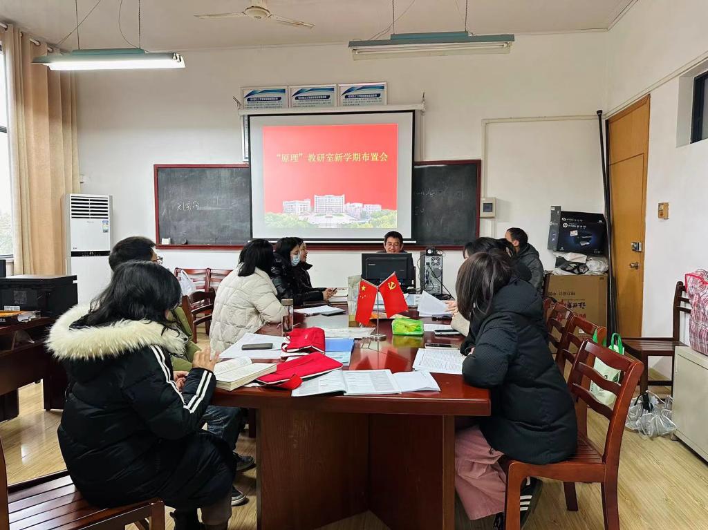 “原理”教研室全体教师在教研室举行了本学期第一次集体备课会暨新学期工作布置会,开展集体备课并布置新学期补考、师德师风建设考评和其他工作。会议由教研室主任许屹山主持。