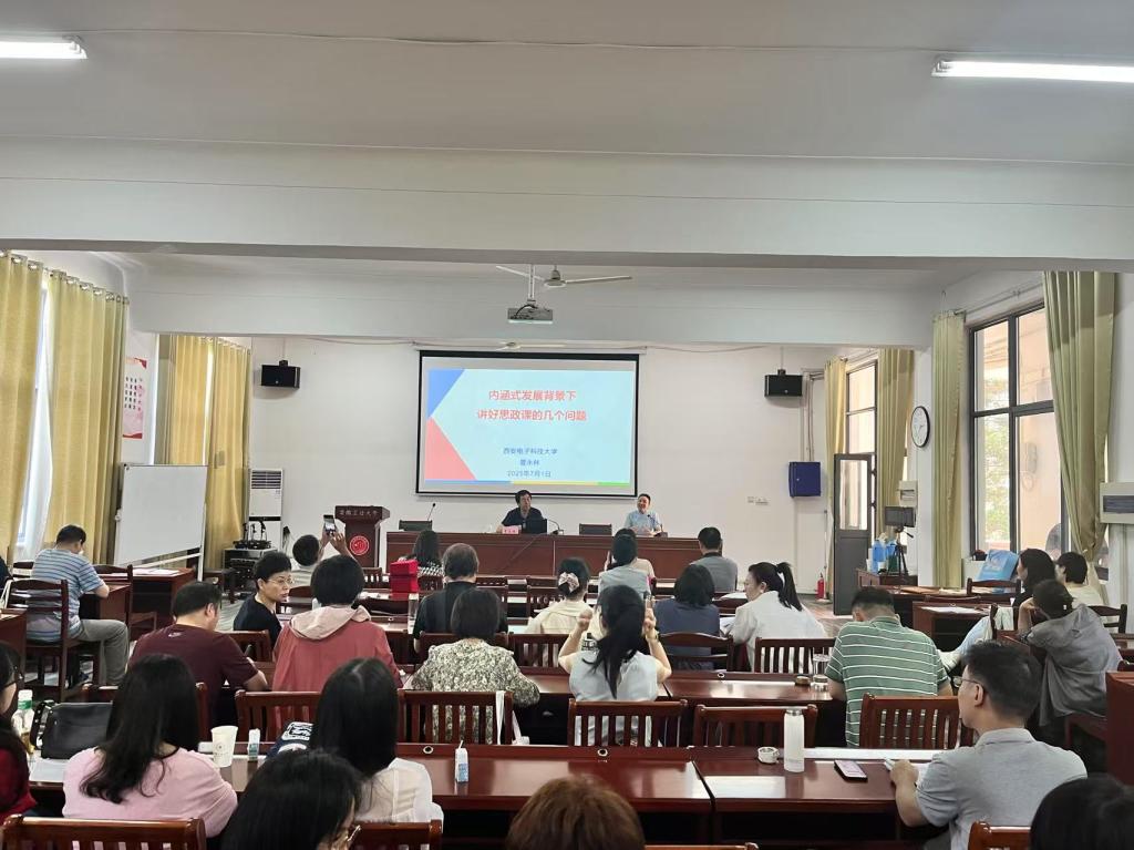 为促进理论思政课改革,提升思政课教师的教学能力与水平。7月2日,西安电子科技大学涩涩视频 教授、“老夏说课”公众号创建人夏永林应邀莅临我校涩涩视频 ,作题为《内涵式发展背景下讲好思政课的几个问题》的报告。报告由涩涩视频 院长郑洁主持,学院全体思政课教师参加。