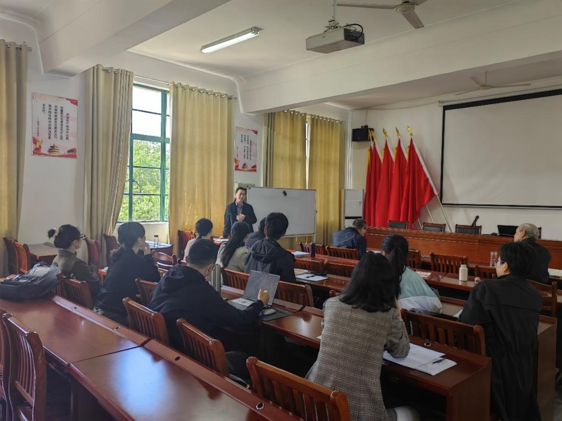 为深入学习贯彻党的二十大精神,扎实推进学习贯彻习近平新时代中国特色社会主义思想主题教育,进一步增强《毛泽东思想和中国特色社会主义理论体系概论》课程教学的科学性、针对性、时效性,尽快提高新进教师教学水平与教学能力,2023年5月11日,“概论”教研室组织全体授课教师于学院325报告厅,开展青年教师教学展示与交流集体备课活动。副院长林忠心出席,会议由教研室主任阮超群教授主持。