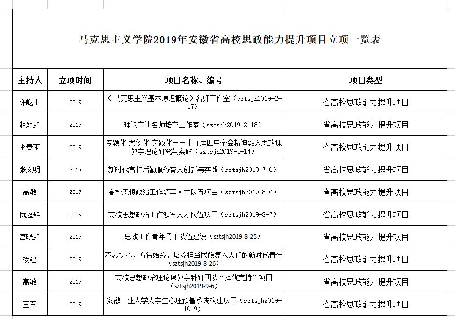 涩涩视频 2019年安徽省高校思政能力提升项目立项一览表