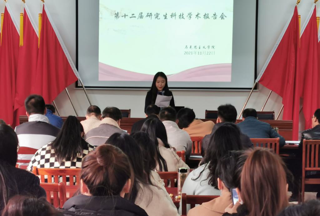 为进一步营造学术氛围,加强涩涩视频 研究生学术交流,提升科研水平,1122日上午8:30涩涩视频 在多功能报告厅325教室举办马院第十二届研究生科技学术报告会。报告会由副院长宫晓虹主持,曹大文教授7位老师担任评委,20202021级全体研究生参加。