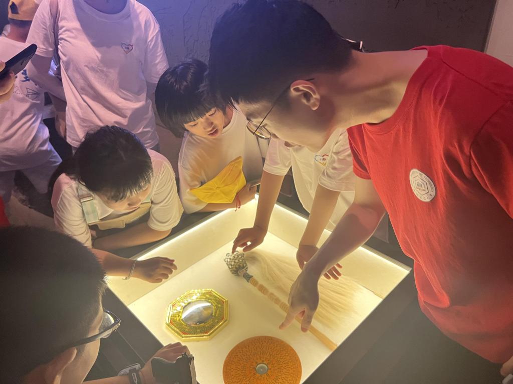 丰富暑期文化生活,帮助学生开阔视野、增强成长自信。7月29日上午,实践队员与小朋友们一起乘车前往此次活动第一站——渡江战役纪念馆。他们在实践队员的带领下追寻红色足迹,了解渡江战役这段历史征程,重温渡江战役激荡人心的热血岁月,感悟永垂不朽的渡江精神和革命先辈们崇高的爱国情怀。小朋友们还走进安徽名人馆,实践队员向他们详细讲解了安徽的名人及其背后的精彩故事,让他们深刻感受到了安徽悠久的历史根脉和深厚的文化底蕴。下午,实践队员和小朋友们一起观览了环巢湖大道的秀美景色,感受巢湖风光,大家嬉戏、逗趣,享受着轻松和快乐!最后,实践队员带领小朋友们来到安徽创新馆,与他们一同在参观中穿越神秘的“量子隧道”,触摸量子魔盒,“走近”量子应用领域,“遇见”安徽在科技创新方面的成就和发展。7月30日上午,实践队员带领小朋友们来到合肥市科技馆,一起了解绚丽多彩的科技展品,孩子们大开眼界、深受感染,充分感受到科技的魅力,激发了他们对科学奥秘的浓厚兴趣,让他们从小在心中埋下了科技的种子。