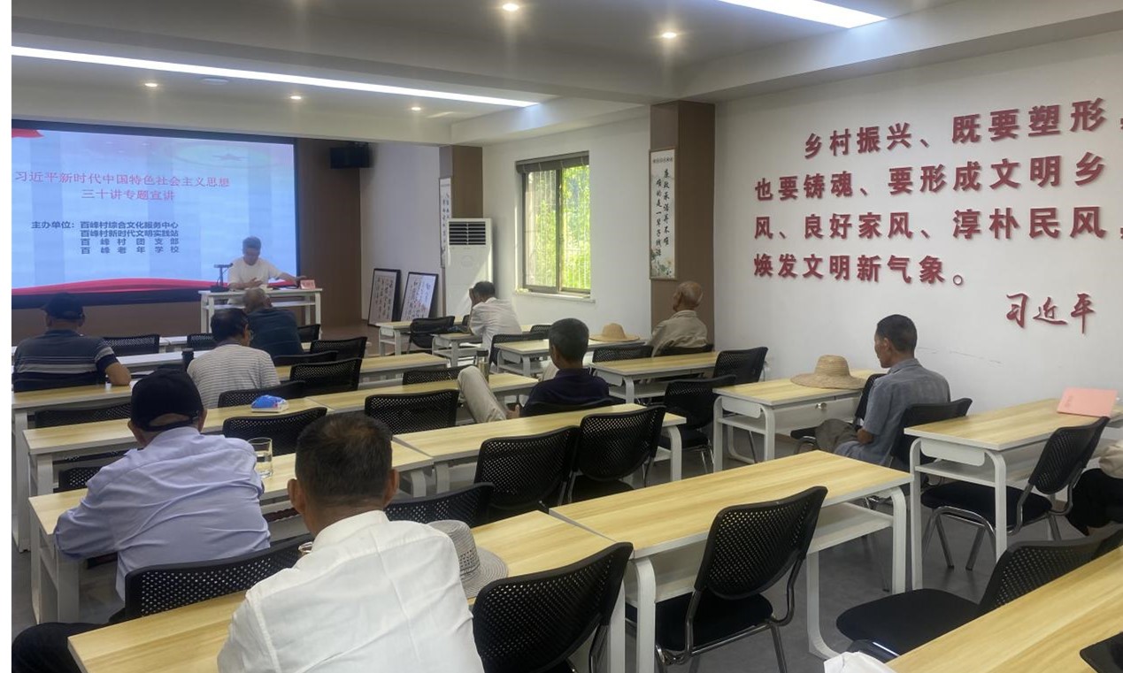 首先,实践团队队员们来到了百峰村。在国家乡村振兴战略背景下,丹阳镇百峰村创新性地将新时代文明实践融入乡村振兴建设工作,打造了百峰乡学堂。走进百峰乡学堂,实践队和村民们一起上了一堂课,主讲人张建军谈到了乡村的属性与中国传统文化的联系,城市文化和乡村文化的关系和以及怎样坚定文化自信。随后,实践队成员就百峰村乡学堂发展、文化基础设施建设、青年群体在乡村振兴中作用发挥等方面与张建军进行了深入交流,张建军针对大家提出的问题,认真进行了解答,并向大家介绍了百峰村推进乡村振兴战略的“五乡一采一平台”路径,五乡即乡学、乡宿、乡厨、乡宅、乡游,一采即农副产品,一平台即运营平台。张建军还向大家介绍了百峰村实行的生态文明积分制度和百峰村“文明银行”。通过“文明银行”的建立,村民的居住环境得到了很大改善。经过深入地交流,实践队员深刻体会到文化振兴是乡村振兴之“魂”,为乡村振兴提供智力支持和精神动力。生态振兴是乡村振兴之“基”,为乡村振兴提供重要支撑和基础保障。新时代青年要以专业知识为背景,使党的创新理论在乡村遍地开花,并将乡村优秀传统文化发扬光大,以文化力量助推生态文明建设。