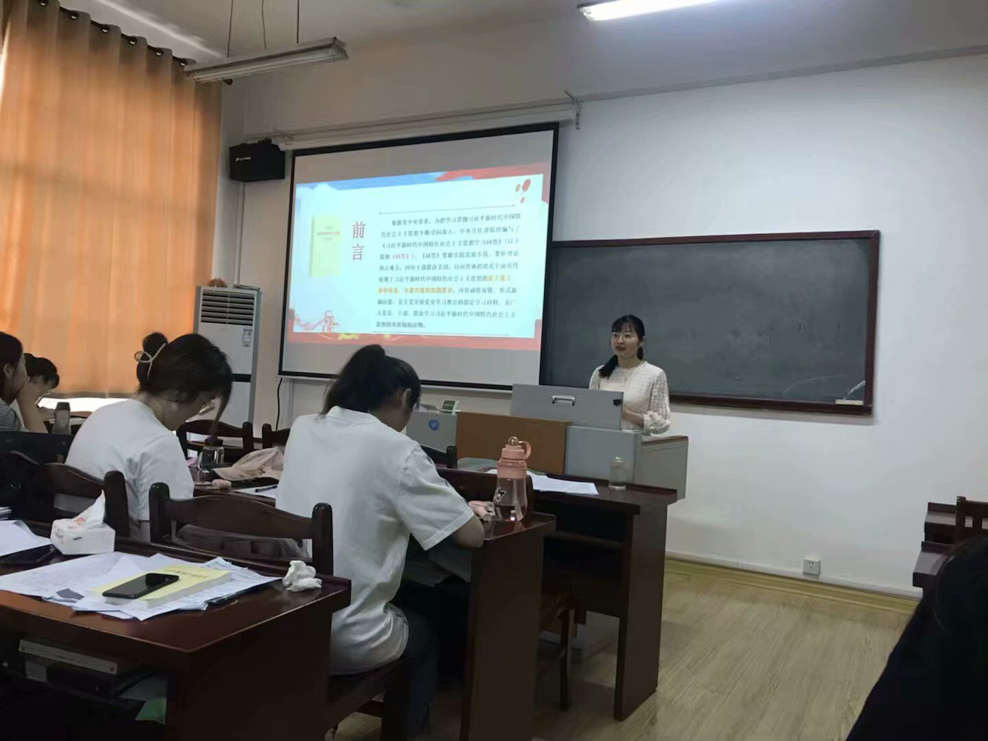 本次读书汇报会一共有七位同学分享了读书心得秦姗姗刘像玲张雅楠三位同学对习近平新时代中国特色社会主义思想学习问答进行了汇报她们纷纷表示应站在“两个一百年”奋斗目标历史交汇的关键节点,用习近平新时代中国特色社会主义思想这一马克思主义中国化的最新理论成果武装头脑杜鑫同学分享的毛泽东 邓小平 江泽民 胡锦涛关于中国共产党历史论述编摘一书深刻阐释了党在各个历史时期的光辉历程、理论成果、宝贵经验和伟大精神。张晓羽张紫薇两位同学分享的是中国共产党简史的研读心得,这本书展现了我们党自诞生之日起就把为中国人民谋幸福、为中华民族谋复兴作为自己的初心和使命的历史。为此,党把中国人民团结凝聚成万众一心的磅礴力量,进行了前赴后继的不懈奋斗。顾懿同学就研读的论中国共产党历史进行了汇报他认为这本书对增强“四个意识”、坚定“四个自信”、做到“两个维护”具有十分重要的指导意义。报告会后,其他同学也纷纷参与了讨论和交流,收获很大。