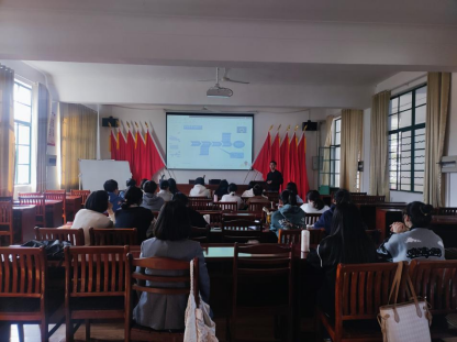 王玉坤以“科研课题与我何干”问题开篇,联系学生实际,把握学生心理,拉近学生距离。在此基础上,深刻阐述课题申报技巧,从课题名称、课题依据、文献综述、研究意义、研究内容、研究目标、研究方法、研究创新点及难点、成果完成的时间及形式等九大方面讲述科研课题的要素,剖析撰写课题设计论证时在核心概念、问题意识、研究综述、研究思路、研究方法上存在的问题,用“阅读第一篇文献”,“学术网络、基础软件”两步入门法讲解文献检索实操,最后结合自身课题申报经验讲解如何申报科研课题。