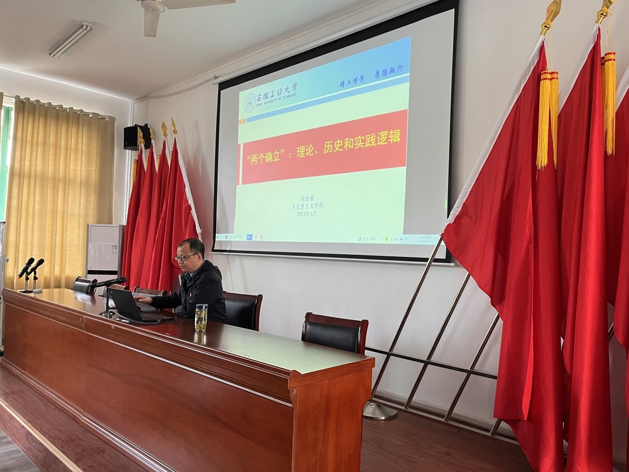 倪松根作了题为《“两个确立”:理论、历史与实践逻辑》主题报告。报告从 “两个确立”的理论逻辑、历史逻辑和实践逻辑展开,详细阐述了“两个确立”是马克思主义政党根本原则,是无产阶级政党先进性的决定条件;凝结了党百年奋斗的历史经验,是我们党从百年奋斗历程中得出的必然经验;是新时代伟大实践的必然结论,体现了全党共同意志和全国各族人民共同心愿,是时代、历史和人民的必然选择,是我们应对前进道路上一切不确定性的最大确定性,是全面建设社会主义现代化国家、全面推进中华民族伟大复兴最为可靠的保证。