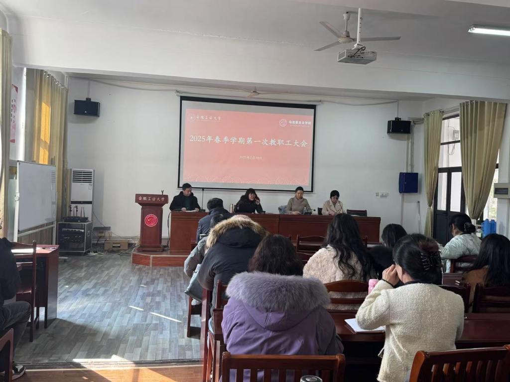 在学院楼325学术报告厅召开2025年春季学期第一次教职工大会,会议由学院党委书记徐惠主持,学院全体教职工参会。