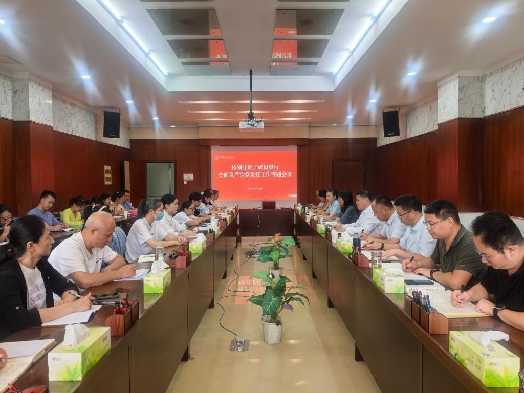 2025年以来落实全面从严治党工作的积极成效,并就贯彻落实学校第五次党代会精神,做好下半年全面从严治党工作提出要求。陆林强调,要切实把思想和行动统一到习近平总书记关于党的自我革命的重要思想上来,健全全面从严治党体系,始终坚持严的基调、严的措施、严的氛围,突出抓好“两个责任”落实,认真履行“第一责任人责任”“一岗双责”。一是要巩固拓展深入贯彻中央八项规定精神学习教育成果,充分运用从抓作风入手推进全面从严治党的重要经验,推进作风建设常态化长效化,筑牢贯彻中央八项规定精神的思想堤坝,深刻认识作风建设的重要性紧迫性,清醒认识“四风”问题的严重危害,以打攻坚战、持久战的决心和恒心,坚持动真碰硬、一抓到底。二是要深化细化全面从严治党“四责协同”机制,切实履行管党治党主体责任,将党建工作与学院、部门工作同谋划、同部署、同推进,构建起权责明晰、层层落实的责任链条,杜绝“一手硬、一手软”的现象;各责任主体都要知责、担责、履责,切实增强管党治党的责任感使命感,不断巩固发展全党动手一起抓的良好局面。三是要坚决做好各类整改整治工作,加强部门、院系间联动协同,凝聚整改合力、加快推进进程,确保整改整治到位,要注重举一反三,建立健全长效机制,推动问题从根源上得到彻底解决。四是要始终以高质高效的工作服务学校发展大局,全面提升服务师生工作水平,坚定不移推动全面从严治党向基层延伸、向纵深发展,始终把权力用在服务学校发展、增进师生福祉、培育时代新人的关键处,为实现学校内涵式高质量发展作出新的更大贡献。(撰稿:费白露 审核:方大春 徐惠)