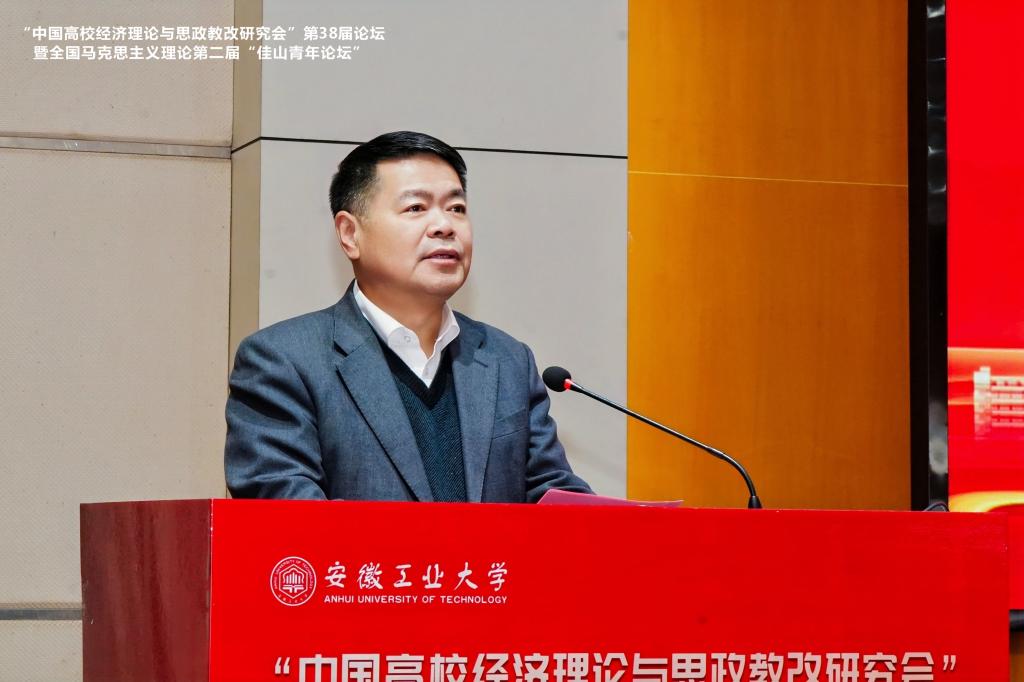 建设发展取得的成绩,并代表学校向全体来宾表示热烈欢迎和衷心感谢。他指出,本次论坛聚焦学科前沿,荟萃学界同仁,共议政治经济学理论热点与思政课教学改革实践,必将切实推动高校经济理论研究水平和思政课教学质量全面提升。