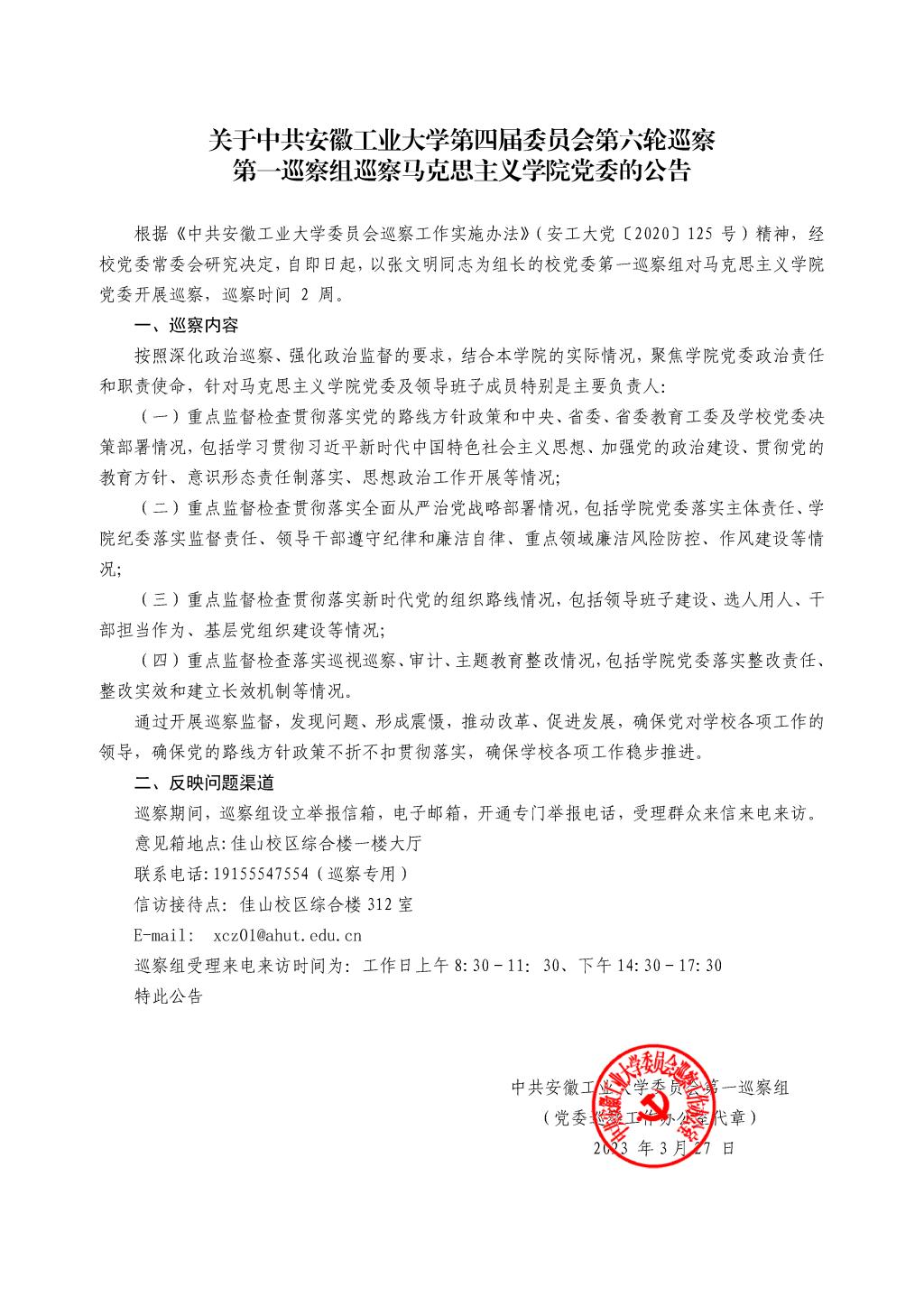 关于中共涩涩视频 第四届委员会第六轮巡察第一巡察组巡察涩涩视频 党委的公告