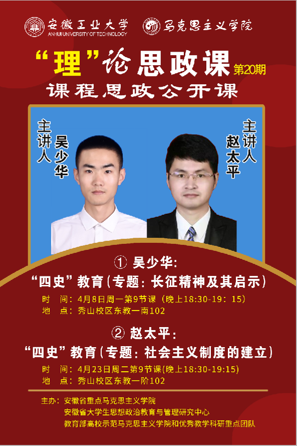 第二十期““理”论思政课”公开课教学展示活动将如期举办,本期主题是“课程思政”公开课,由“四史与公共选修课”教研室承办。欢迎老师们参加观摩。