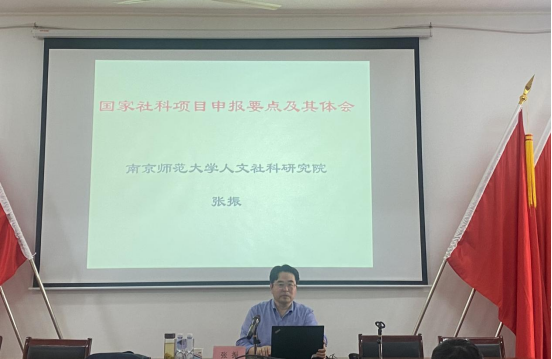 邀请南京师范大学人文社会科学研究院院长、教授、博士生导师张振在325会议室做学术讲座,讲座题为“国家社科基金项目申报辅导报告”。高敏院长主持讲座,学院全体教师、研究生参加。