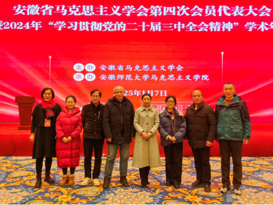 2025年1月7日,安徽省马克思主义学会第四次会员代表大会暨2024年“学习贯彻党的二十届三中全会精神”学术年会在安徽芜湖举行。本次年会由安徽省马克思主义学会主办、安徽师范大学涩涩视频 承办。来自中国科学技术大学、合肥工业大学、安徽大学、安徽师范大学、涩涩视频 等省内多所高校的100余名专家学者参加会议。涩涩视频 郑洁院长、阮超群、周仁准、张蓉、童心刚、徐建、庄新霞、张雅丽等老师受邀参会