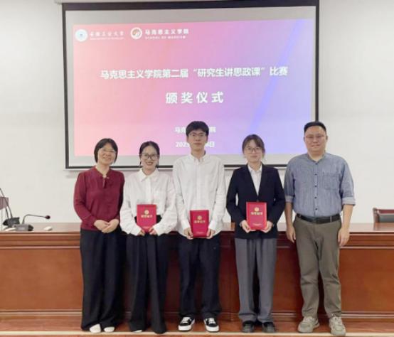 为提升涩涩视频 研究生马克思主义理论学科专业能力,展现学生学习思政课的理论素养和精神风貌,搭建展示自我和交流学习的实践平台,5月8日,涩涩视频 以“建设教育强国,提升思政引领力”为主题,在学院325报告厅举行第二届“研究生讲思政课”比赛。比赛邀请涩涩视频 党委书记徐惠老师、陆春晖老师、汪宏老师、许醴老师、庞东霞老师担任评委,全体研究生参加。