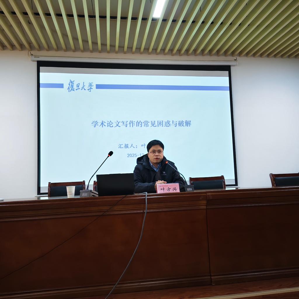 教授、博士生导师叶方兴作题为“马克思主义理论学科论文写作的实践规范”的学术讲座。学院教师和研究生一年级学生参加,报告由副院长宫晓虹主持。