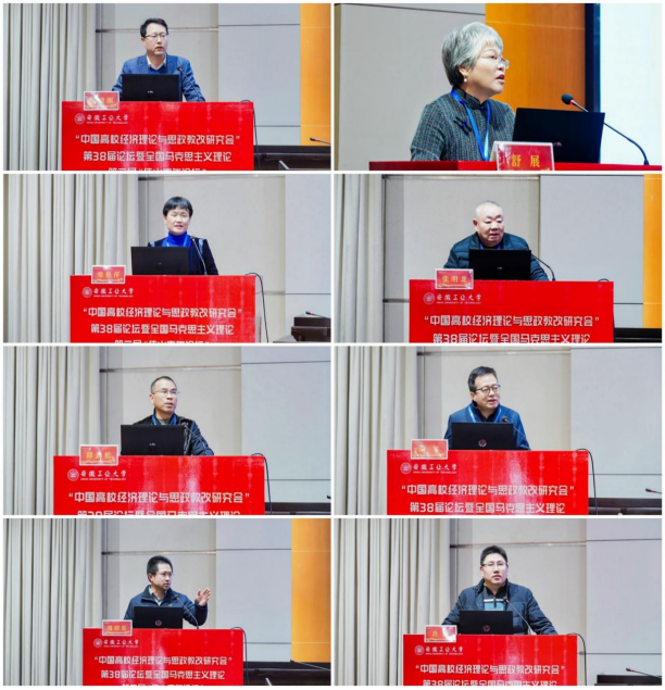 院长张天华教授分别以“构建中国特色社会主义政治经济学自主知识体系框架初探”“深刻把握习近平经济思想的世界观和方法论”“促进思政课堂和社会课堂有效融合的路径探索”“‘概论课’讲好中国生态文明建设故事”“关于党的二十届四中全会精神融入中国近现代史纲要课的思考”“学习党的二十届四中全会精神的几点体会”“中国式现代化建设进程中的共同富裕基层实践”“习近平经济思想与‘第二个结合’”为题先后进行了研讨交流。